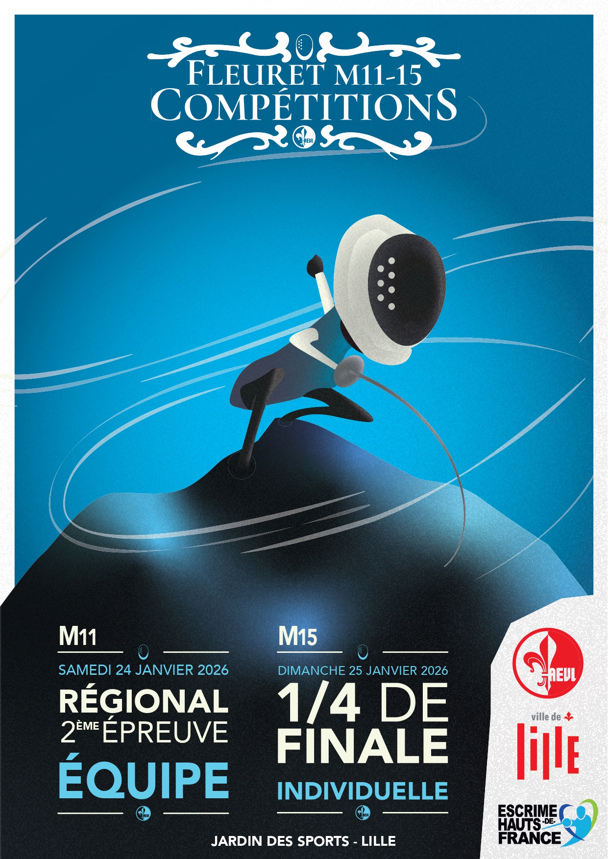 Nous organisons une compétition d’escrime Fleuret ce samedi 24 et dimanche 25 janvier 2026 à Lille (salle du jardins des sports 97 rue d’esquermes à Lille)