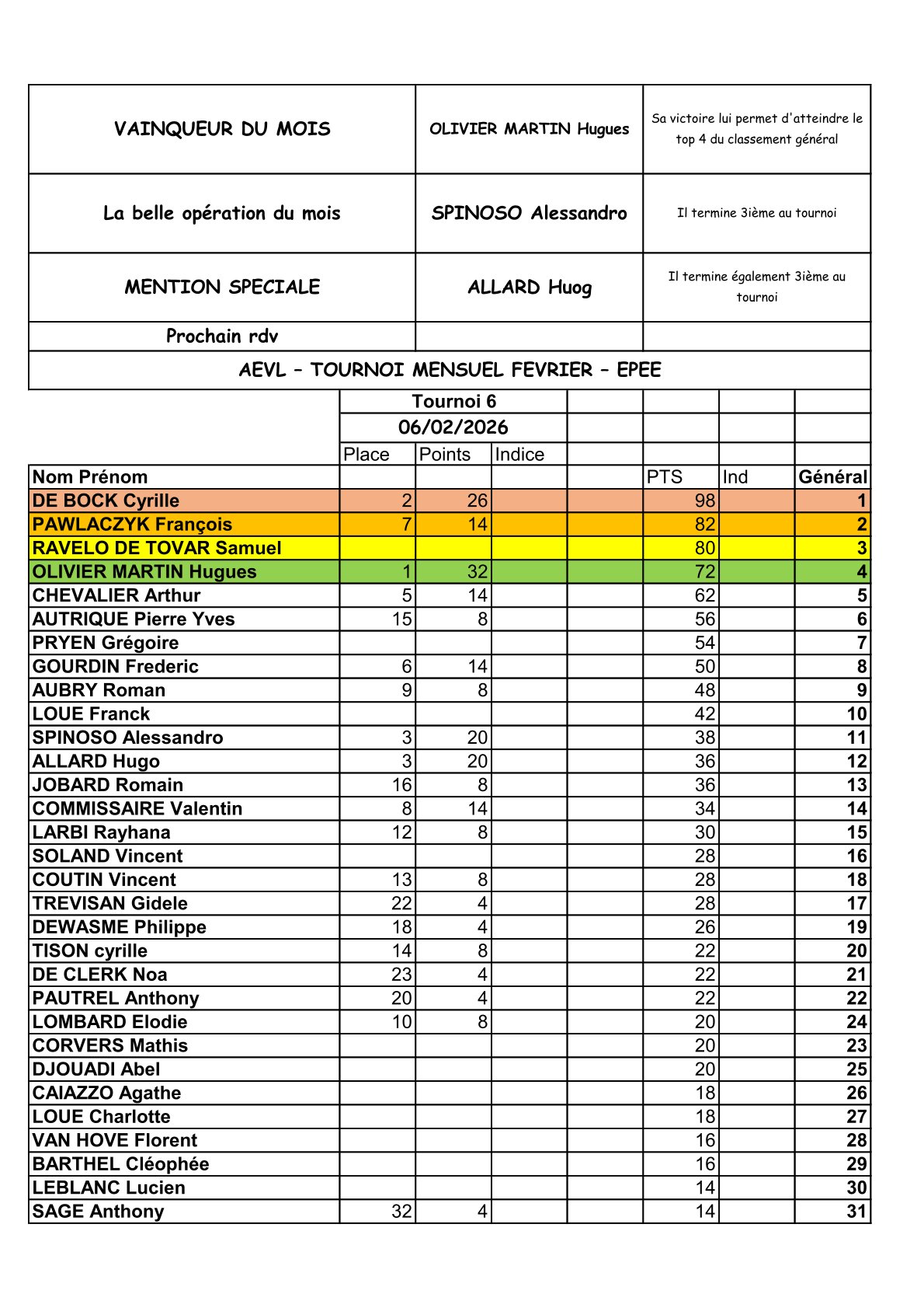 Soyez au rendez-vous de notre challenge mensuel ouvert à tous et à tous les niveaux de pratique!!! Venez vous amuser et apprendre l’épée dans ce cadre compétitif où les plus anciens aident les plus débutants en n’oubliant pas d’être sans failles face à leurs plus forts opposants. L’honneur aux armes est en effet de mise !!!
